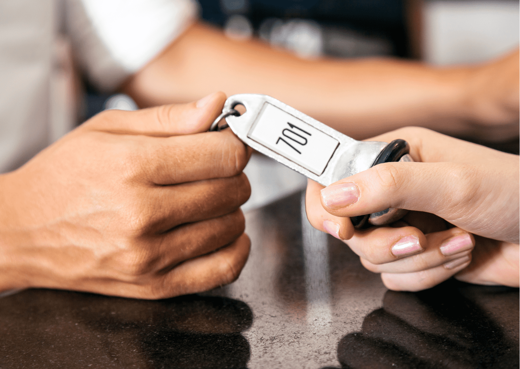 Please check in at the front desk to receive your room key.