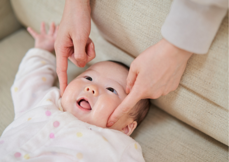 아기의 풍만한 볼살은 모두들 눌러 보고 싶게 만든다.
