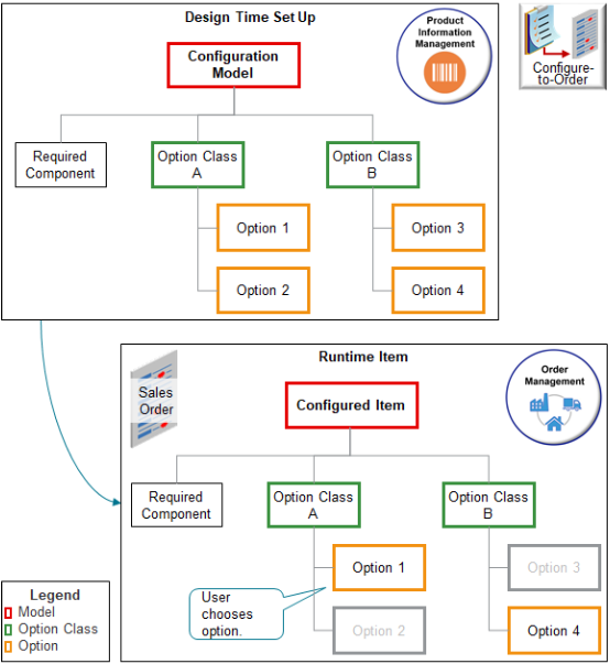Use configure-to-order to allow your customer to choose options for each component of a configured item.