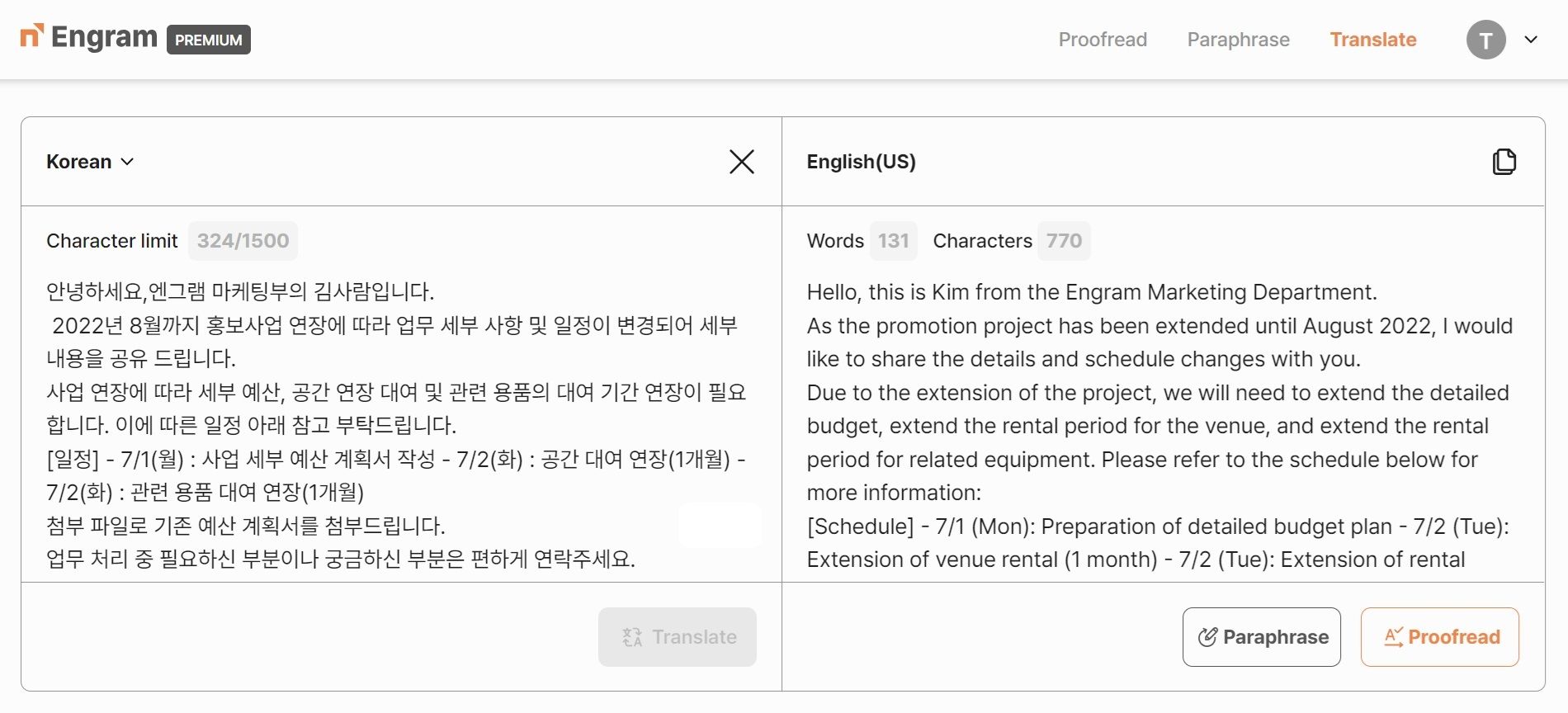 격식있는 표현과 매끄러운 번역을 위해서는 엔그램 번역기 사용을 추천합니다.