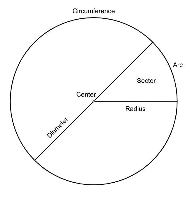 - A sector is formed by two radii and an arc. (부채꼴은 두 개의 반지름과 하나의 호로 형성된다.)