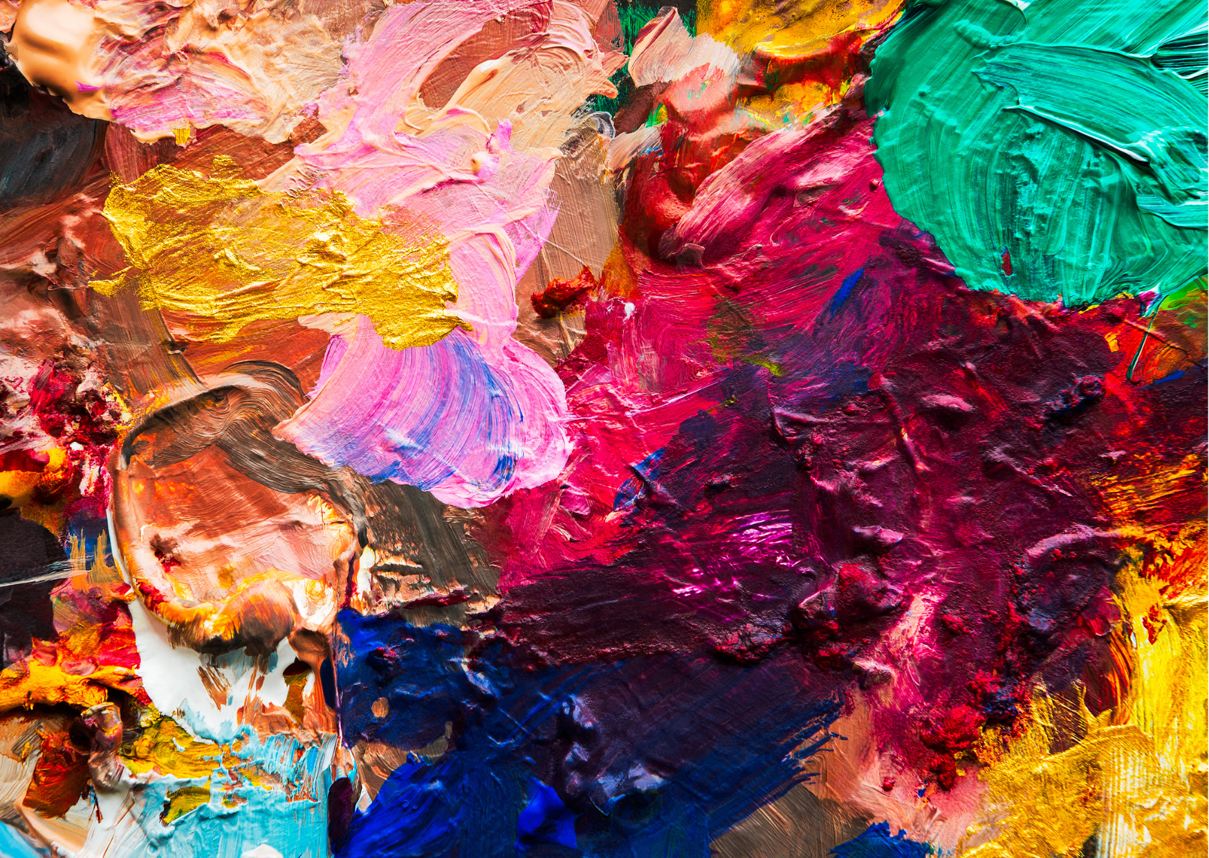 The painting is a mixed representation of vibrant colors and abstract forms.