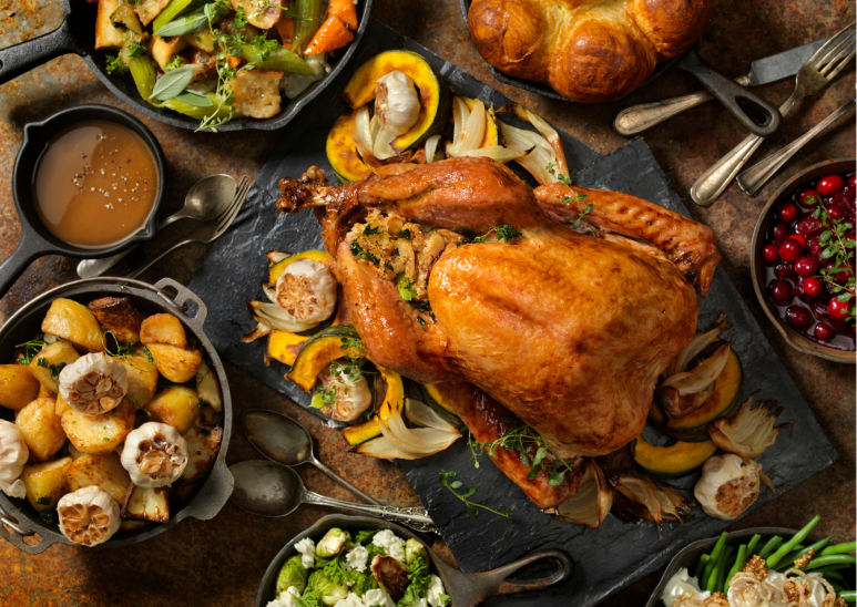 "The Thanksgiving dinner was so extravagant that we all ended up feeling stuffed."