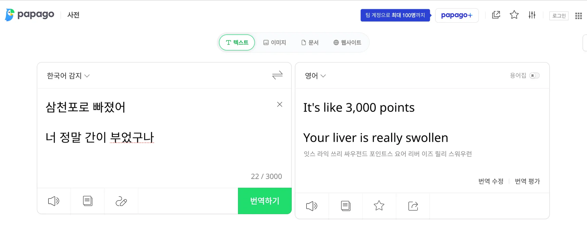 - 파파고(Papago) – 네이버에서 개발한 번역기로, 한국어와 어순이 비슷한 일본어, 중국어 등 아시아 언어에도 강점이 있어 한국어 사용자가 많이 애용합니다. 특히 일상적인 표현이나 구어체 번역에서는 자연스러운 결과를 보여주는 편입니다. 하지만 한국어를 영어로 번역할 때나 그 반대의 경우, 고유 명사나 복잡한 문장은 다소 직역되거나 어색하게 번역되는 경우가 있습니다.