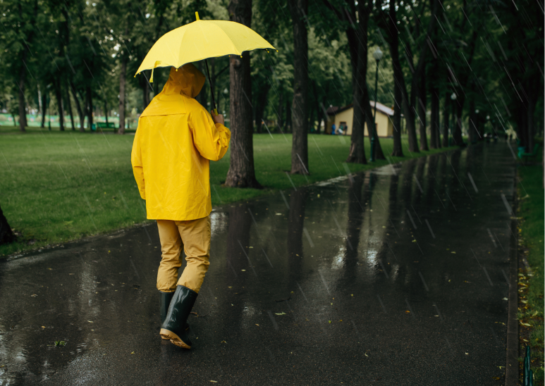 During the rainy season, it's important to be prepared with raincoats and umbrellas to stay dry.