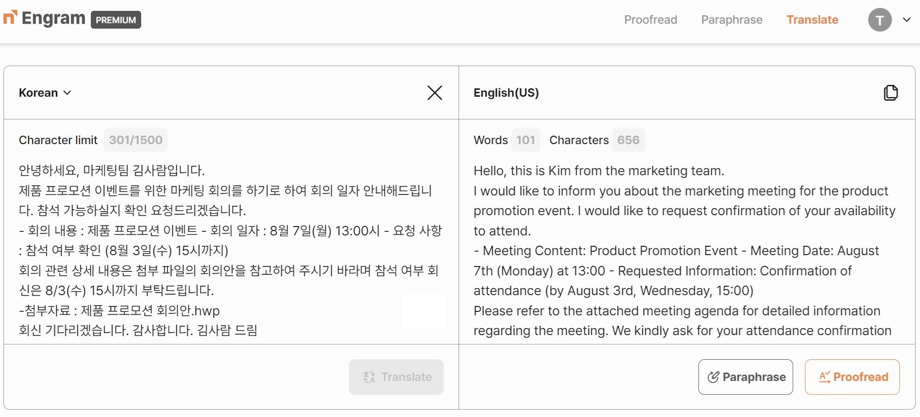 *엔그램 번역기는 생성형 AI를 사용해서 매번 번역 결과의 약간의 차이가 생기기도 합니다.