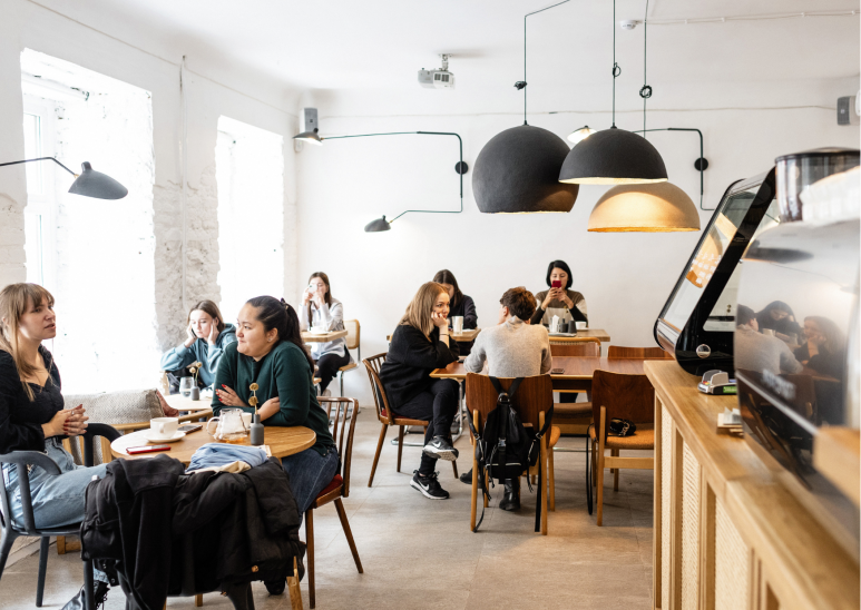 - "The new café in town has great coffee. Everyone loves it!" (마을에 새로 생긴 카페 커피가 정말 좋아. 모두가 그 카페를 사랑해!)