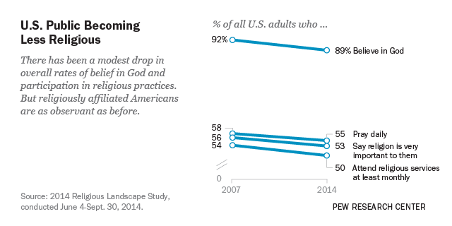 While religion remains important in the lives of most Americans, the 2014 Religious Landscape Study finds that Americans as a whole have become somewhat