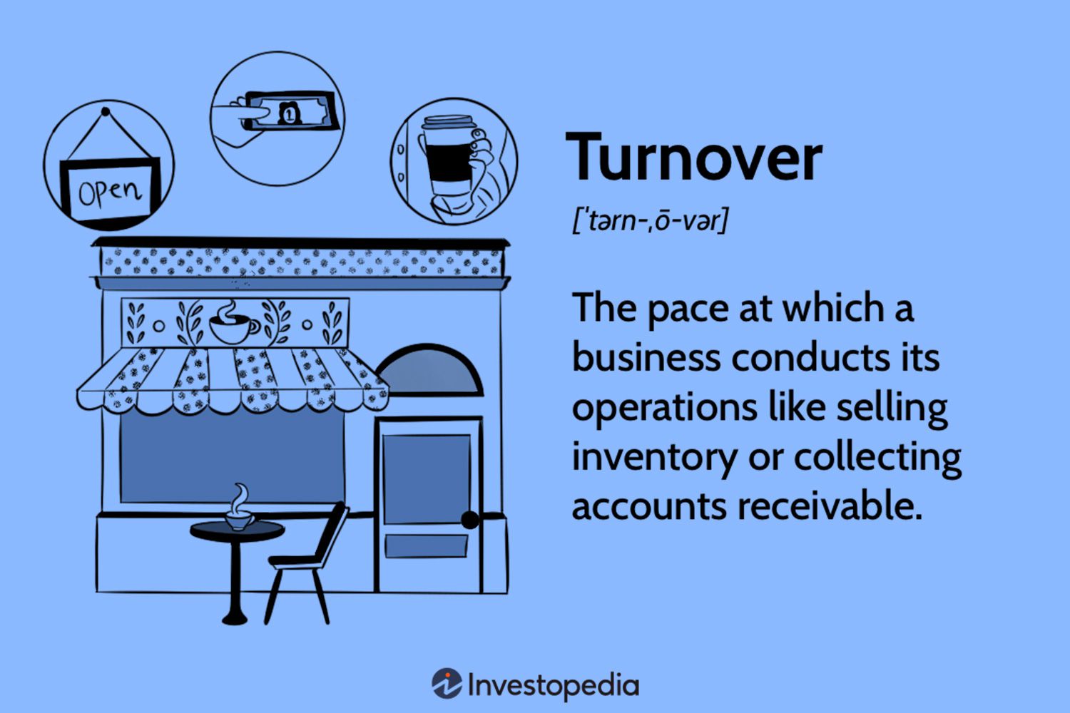 Turnover는 회사가 특정 기간 동안 판매로부터 얻는 금액, 즉 매출액을 의미합니다. Turnover는 또한 특정 기간 동안 매출액 이외의 기업 경영 지표를 이야기할 때 사용되기도 합니다.