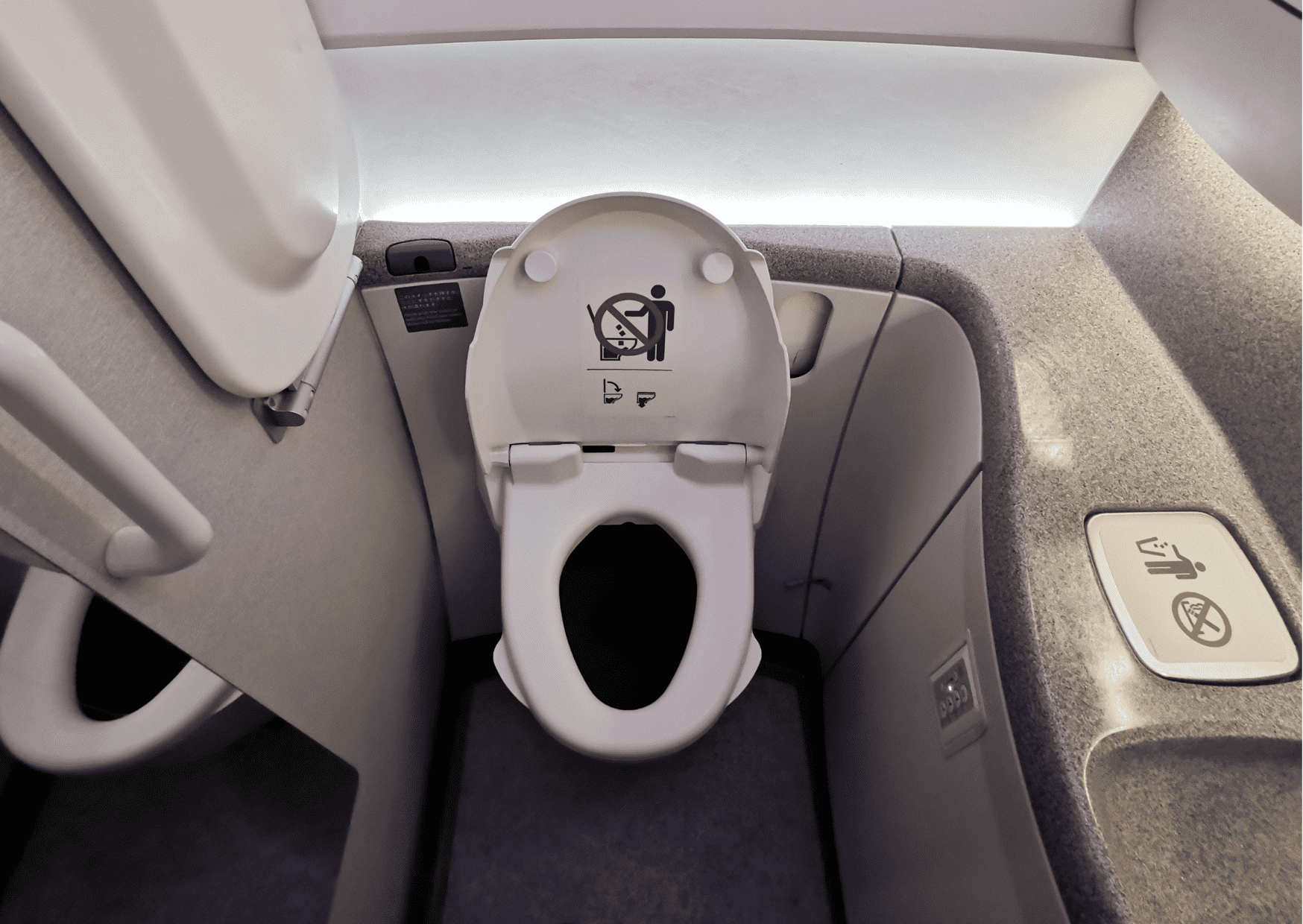 비행기의 화장실은 깨끗하게 유지되었습니다.